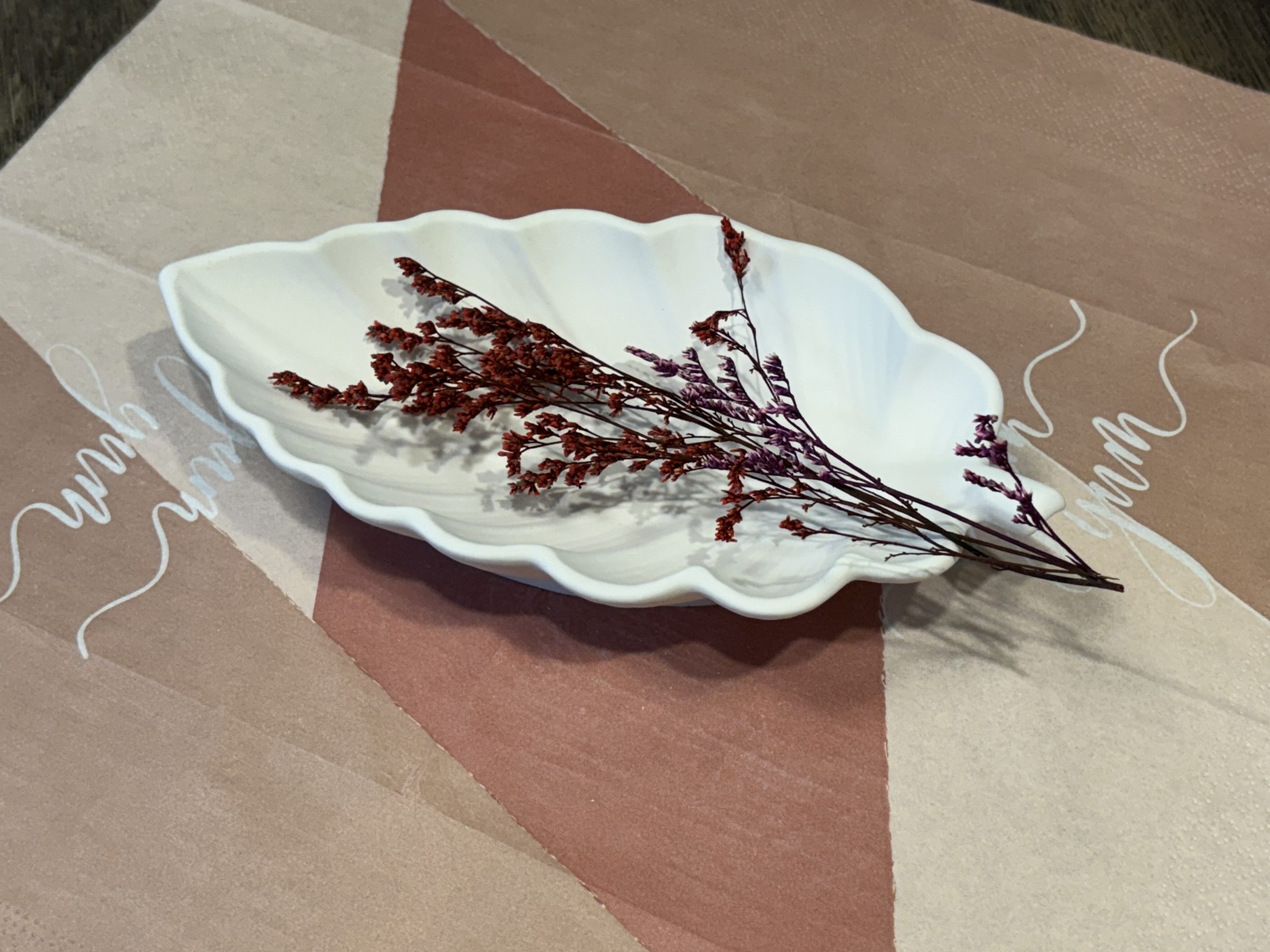 Diese wunderschöne längliche Schale in Form eines Blattes ist in jedem Zu Hause ein Hit. Sie kann als Ablage für Schmuck, Schlüssel oder Make Up-Utensilien dienen. Die Blattform macht sie zu einem besonderen Accessoire und ist auch als Mitbringsel gefüllt mit eingepackten Süßigkeiten ein Knaller.