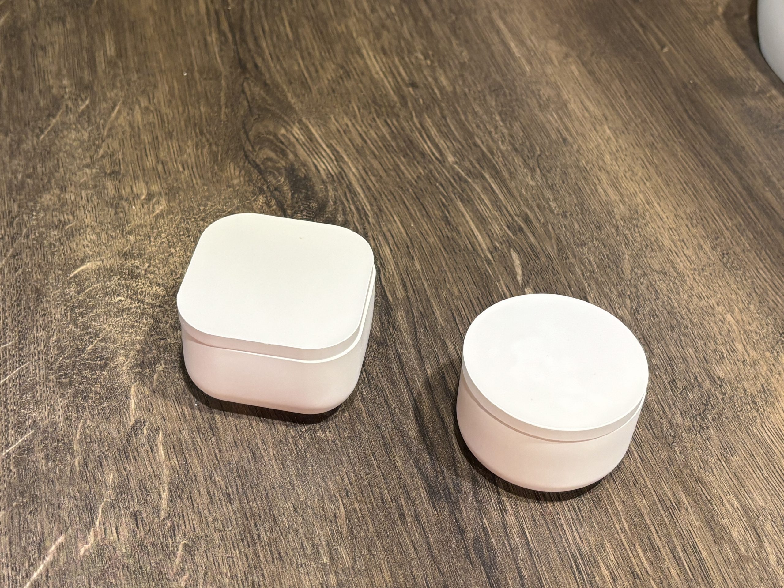 Rund: Durchmesser 6 x Höhe, 4cm mit Deckel, eckig: Breite 6 x Höhe mit Deckel 4,2 cm