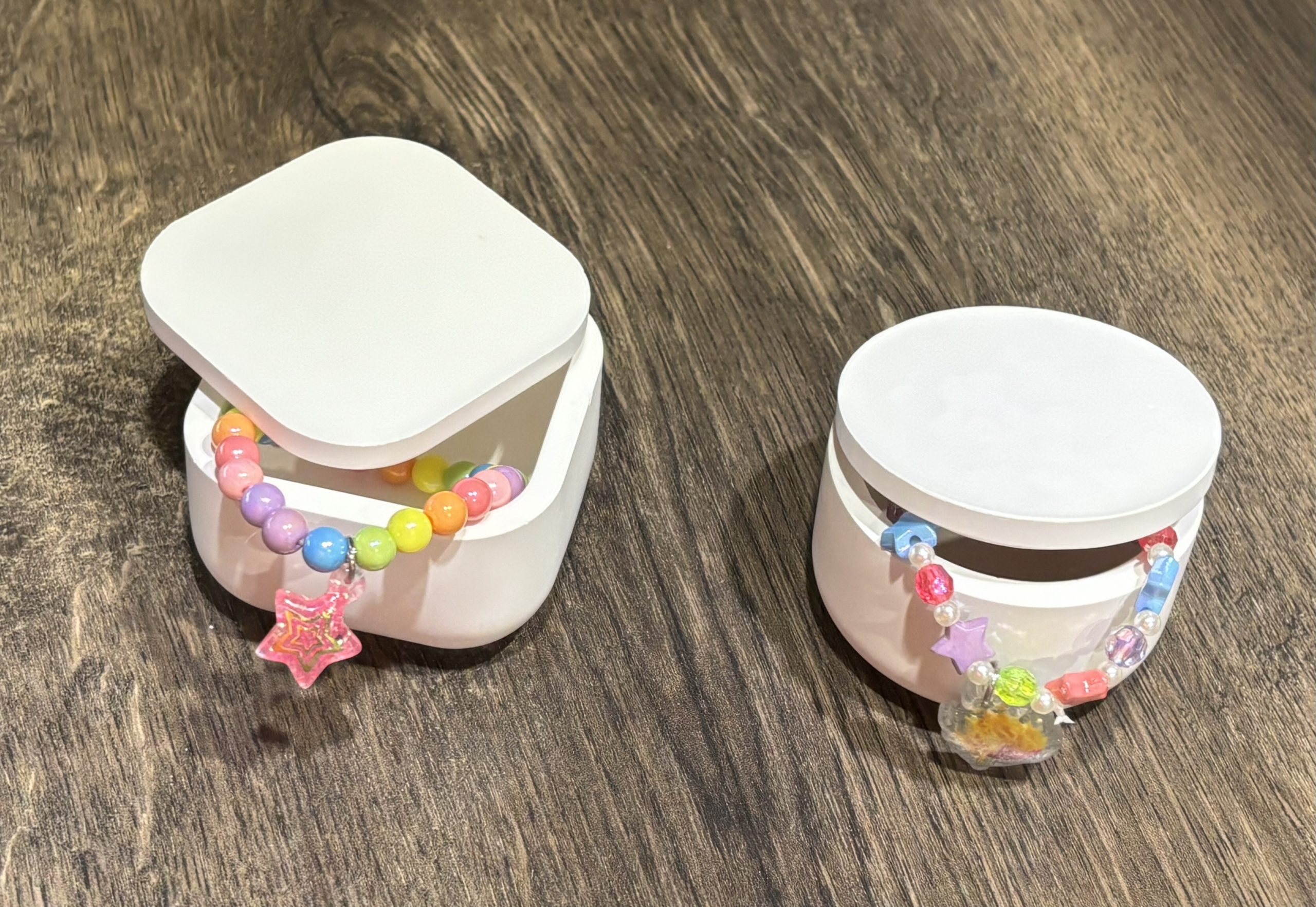 Diese niedlichen Schalen in rund und quadratisch sind jeweils mit einem passenden Deckelchen ausgestattet. Sie eignen sich wunderbar zur Aufbewahrung von Schmuck, verpackten Süßigkeiten oder anderen Kleinigkeiten. Ich biete sie im Set an. Solltet Ihr sie einzeln erstehen wollen, wendet Euch gern an mich.