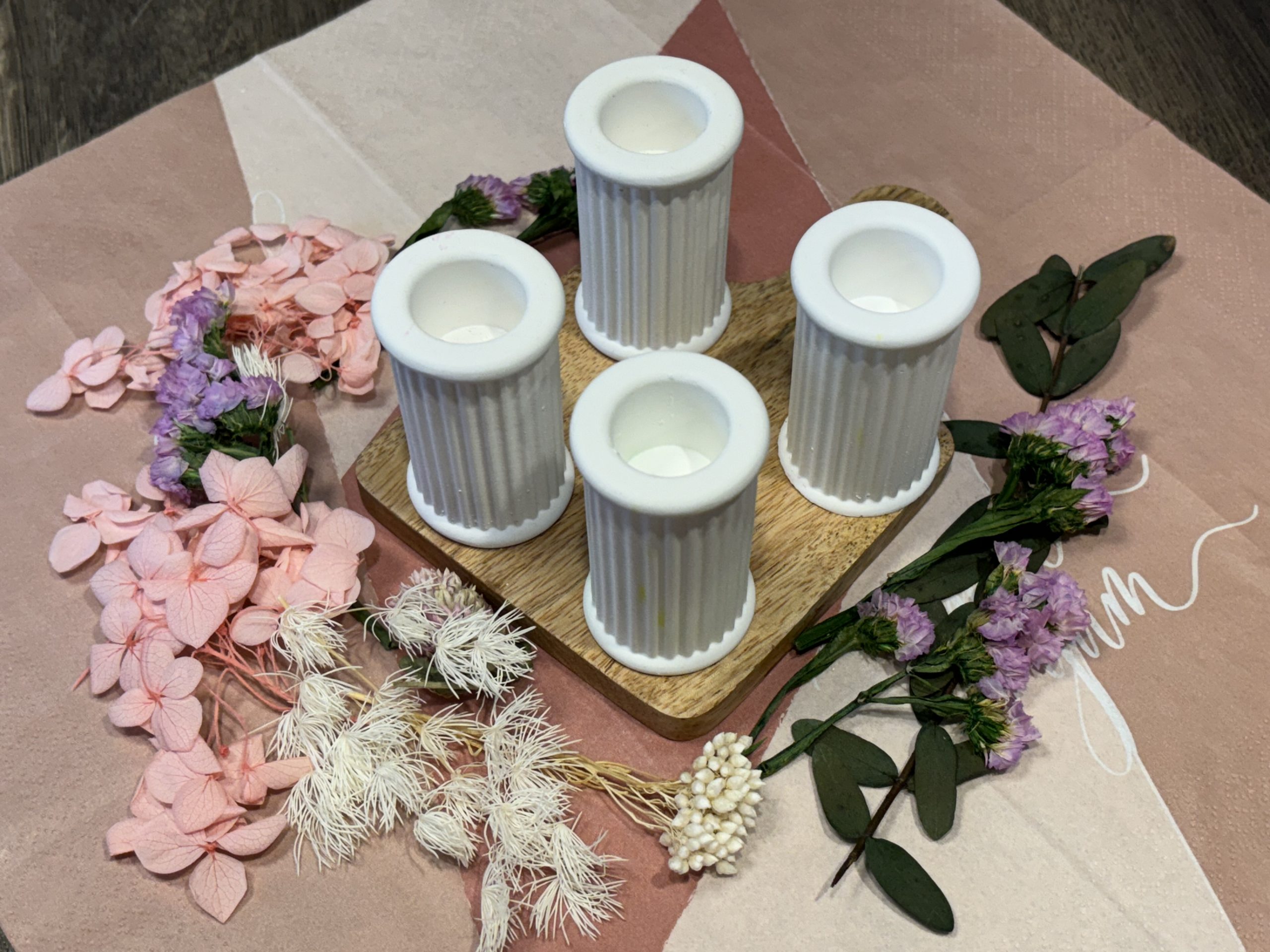 Abgebildete Dekorationen wie Kerzen, Blumen, Holztabletts, etc. gehören nicht mit zum Angebot. Sie dienen lediglich als Dekorationsbeispiel.