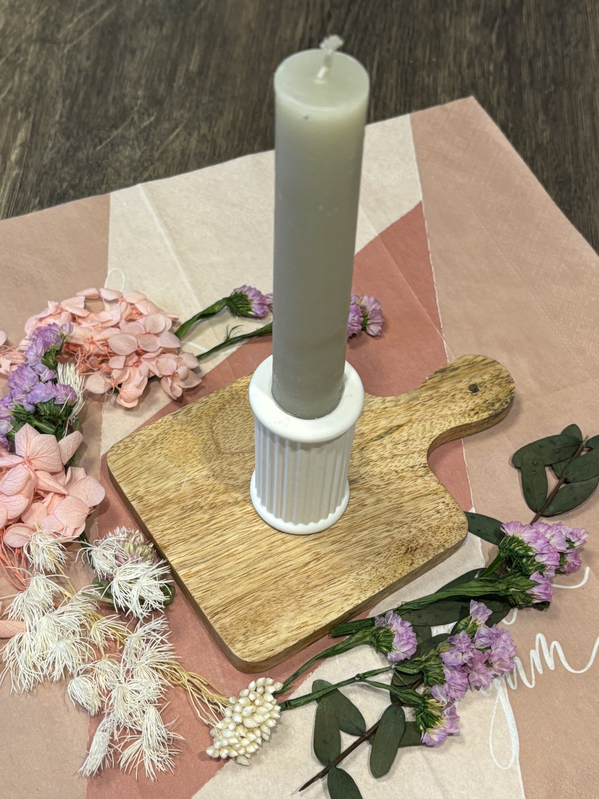 Dieser schöne Mini-Kerzenhalter für Stabkerzen mit Rillenmuster ist in jedem Fall ein Hingucker auf Eurem gedeckten Tisch.