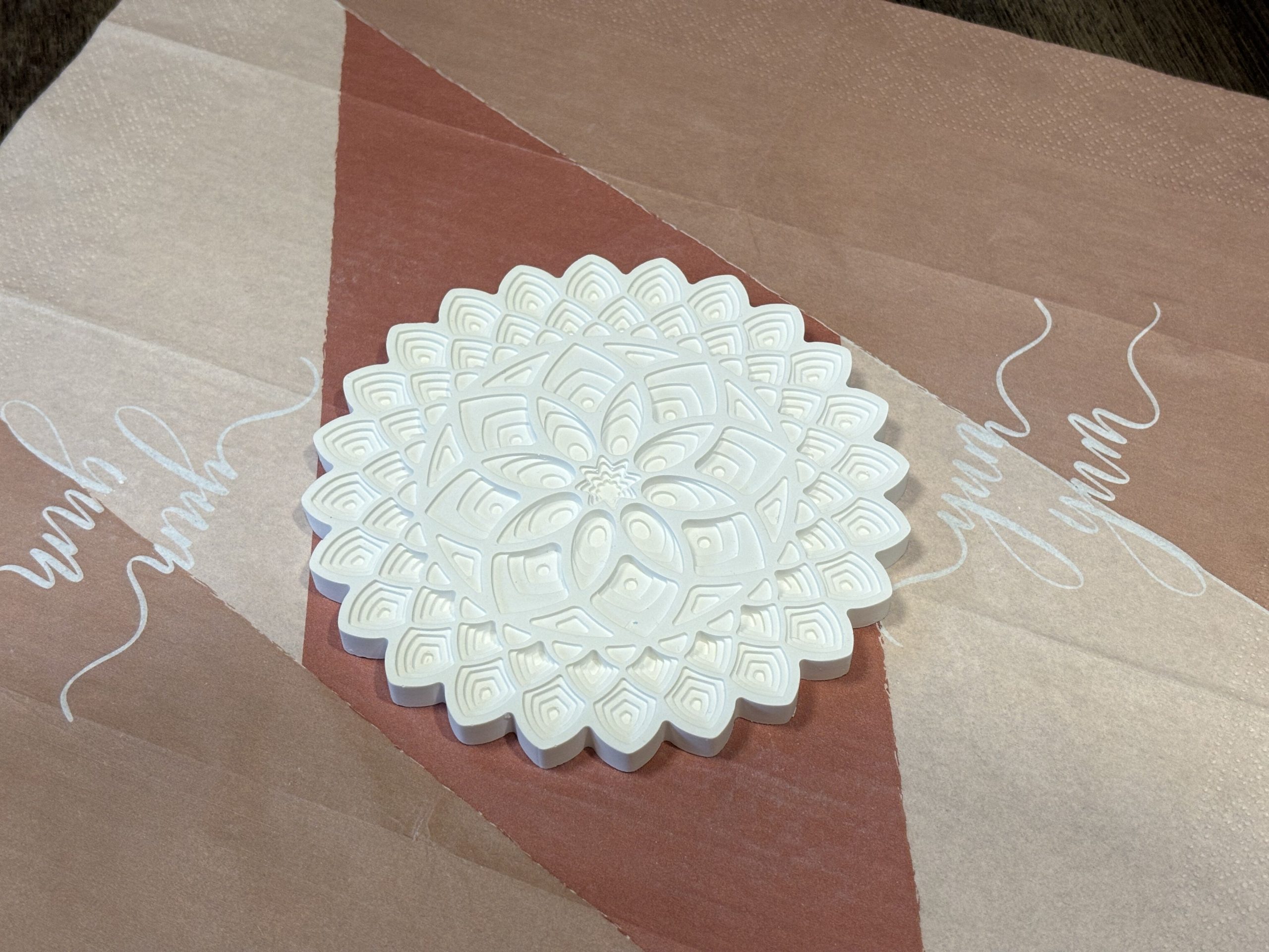 Dieser außergewöhnliche Untersetzer in Form eines Mandalas ist vielseitig nutzbar und auch als Akzent auf einem schön gedeckten Tisch perfekt für jedes Zuhause.