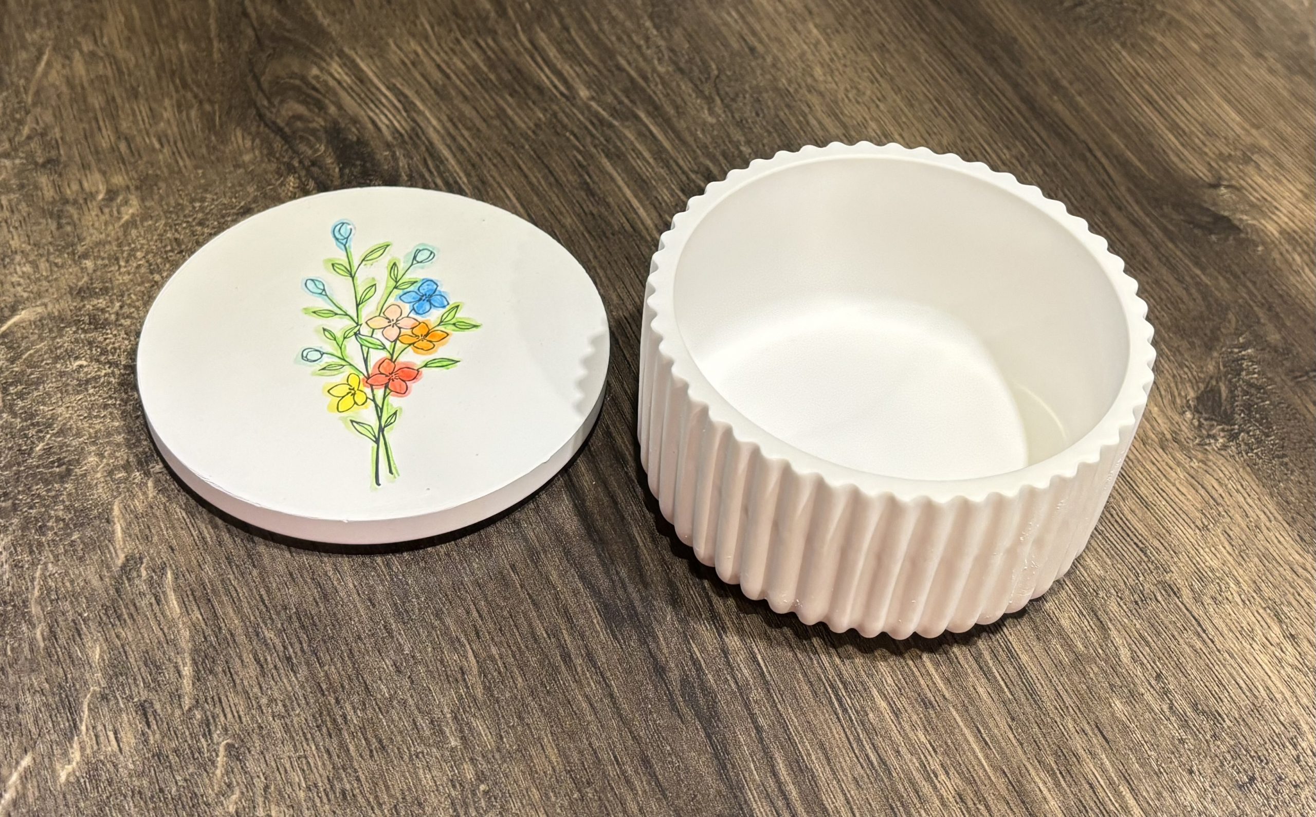 Die Schale mit Deckel und Rillenmuster eignet sich sehr schön zur Aufbewahrung von Stiften, Schmuck oder auf dem Schminktisch für kleine Utensilien. Sie ist vielseitig nutzbar und auch als Dekorationsobjekt mit oder ohne Deckel perfekt für jedes Zuhause.