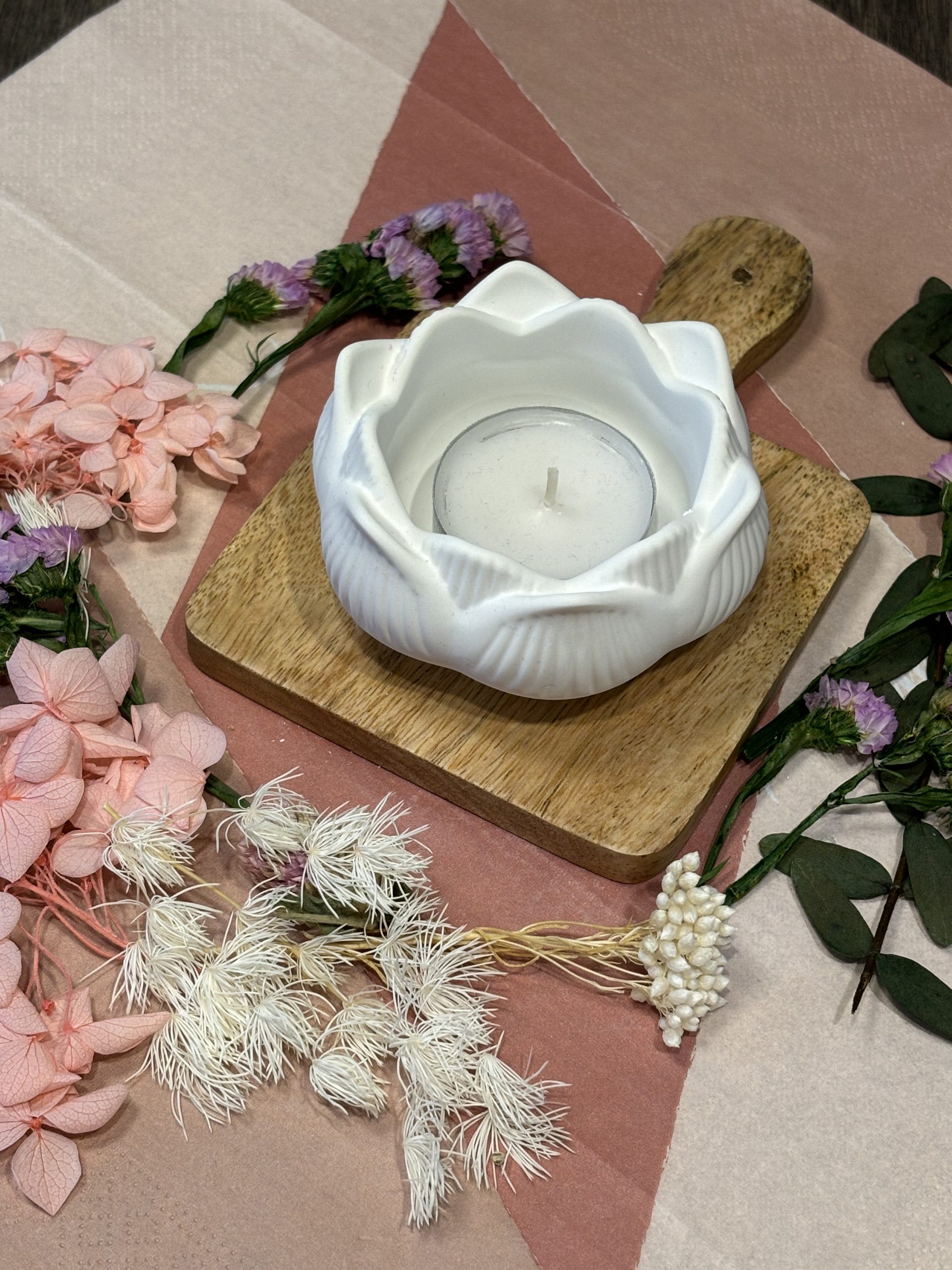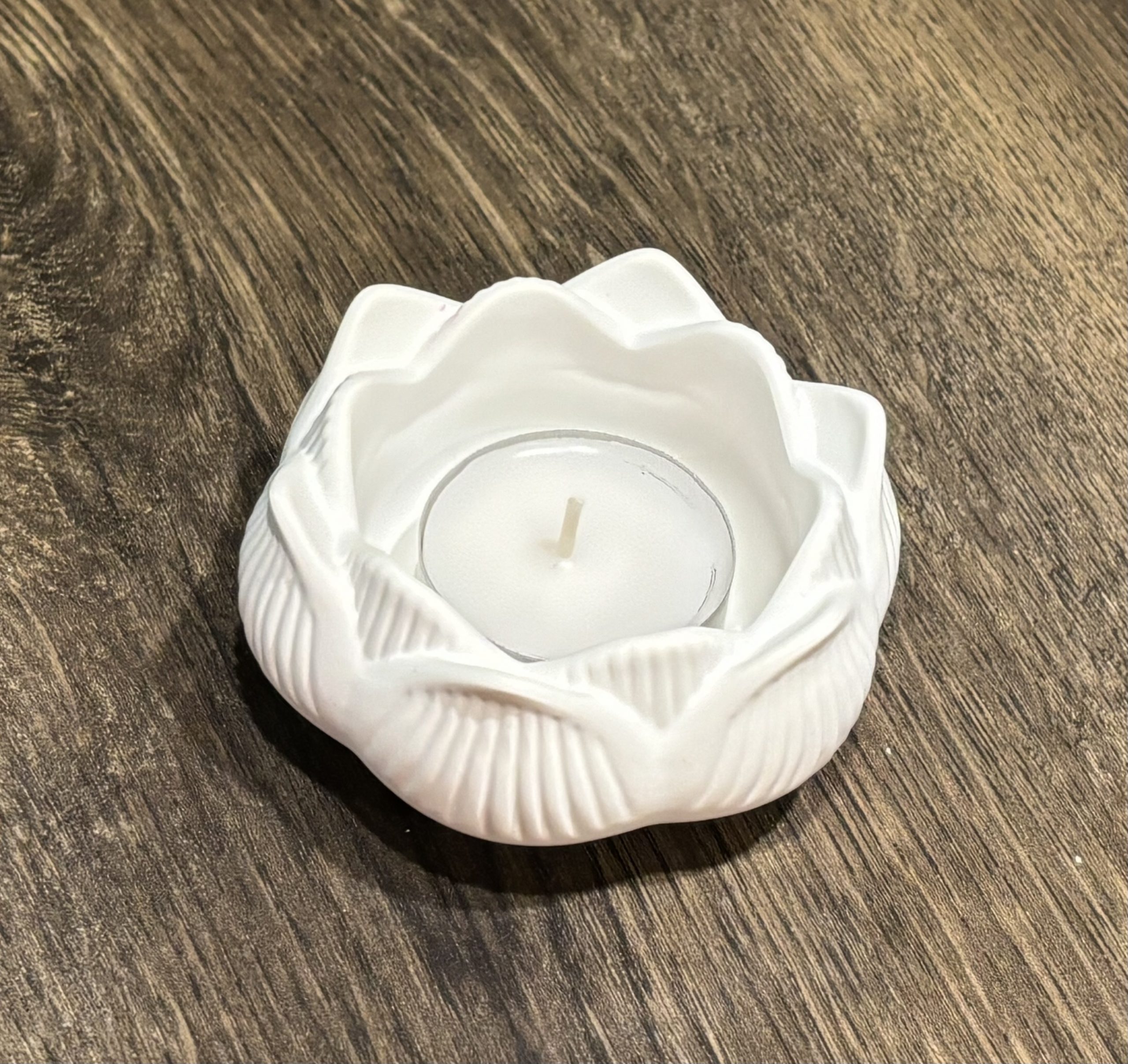 Dieser wunderschöne Teelichthalter in Form einer geöffneten Lotusblüte stellt einen Hingucker in jedem Zuhause dar.